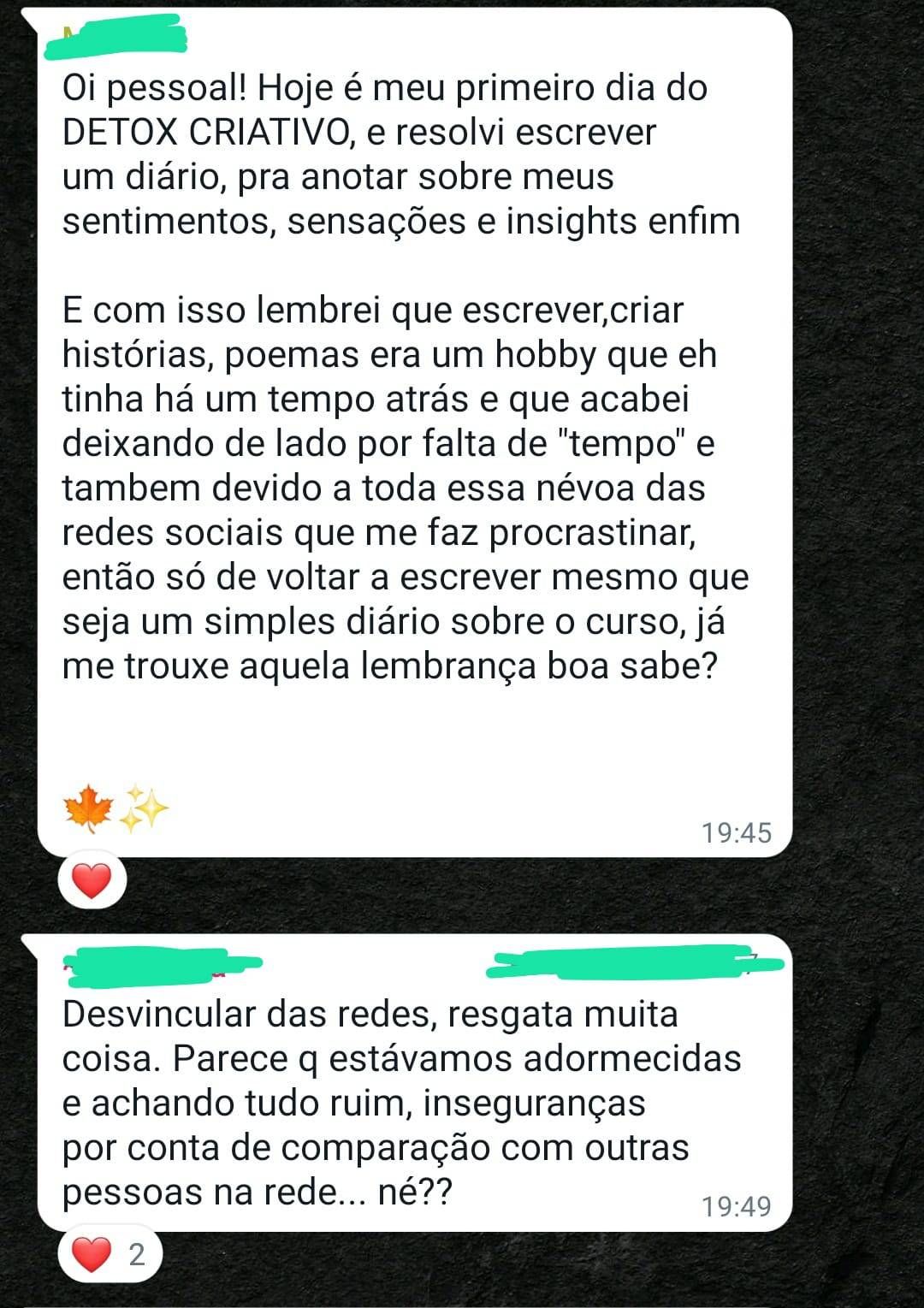 Veja o que estão dizendo sobre o Detox Criativo